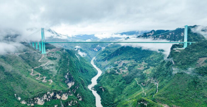 The Huajiang Grand Canyon Bridge towers 625 metres (2,051 feet) above a river and vast gorge in the country’s rugged southern province of Guizhou, also home to the 565-metre Beipanjiang Bridge that is now the world’s second highest.