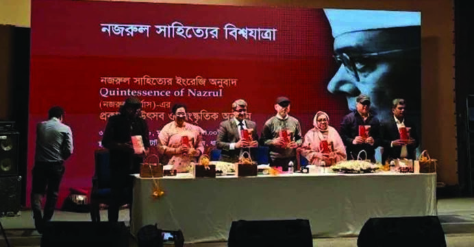 Secretary of the Ministry of Cultural Affairs Md Mofidur Rahman, the poet’s granddaughter and Chairperson of the Trustee Board of the National Poet Kazi Nazrul Islam Institute Khilkhil Kazi, and Prof Dr Tazin Aziz Chowdhury of the University of Dhaka addressed the event as special guests.