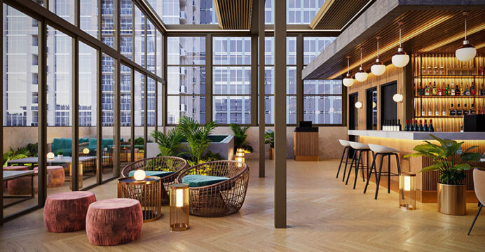 Through its design, the hotel draws inspiration from New York City’s Prohibition-era speakeasies, blending sleek lines, rich textures, and stylish furnishings with modern comfort. Through a welcoming entrance, guests step into a lobby designed with plush seating, warm lighting, and thoughtful details that create a cozy, engaging atmosphere reminiscent of the Jazz Age.