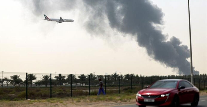 In the eastern emirate of Fujairah, a drone attack on oil infrastructure sparked a fire, authorities said, reporting no injuries and adding that “efforts continue to bring it under control”.